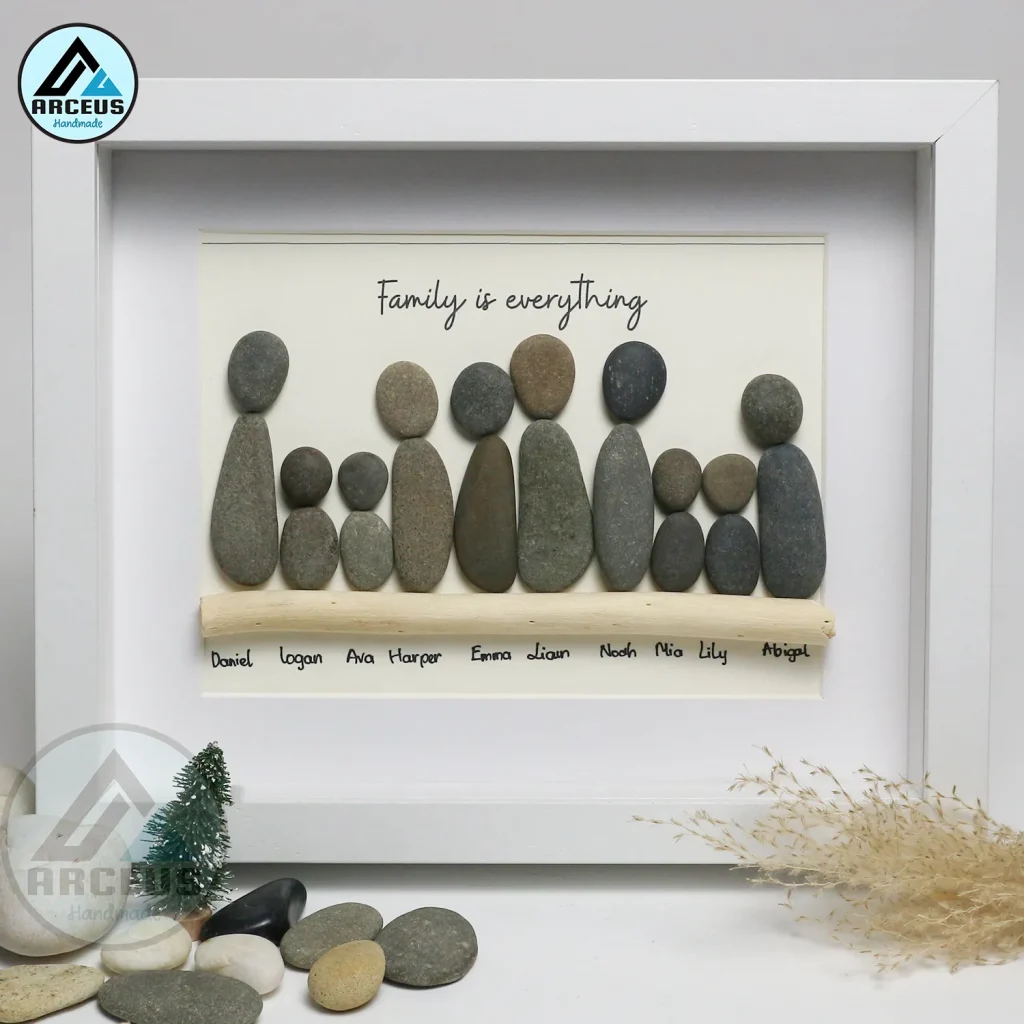 Personalized: Customize your pebble art with family names, important dates, or a heartfelt message to create a one-of-a-kind keepsake that reflects your family’s individual identity. This personal touch transforms the artwork into a treasured heirloom that will be cherished for generations.