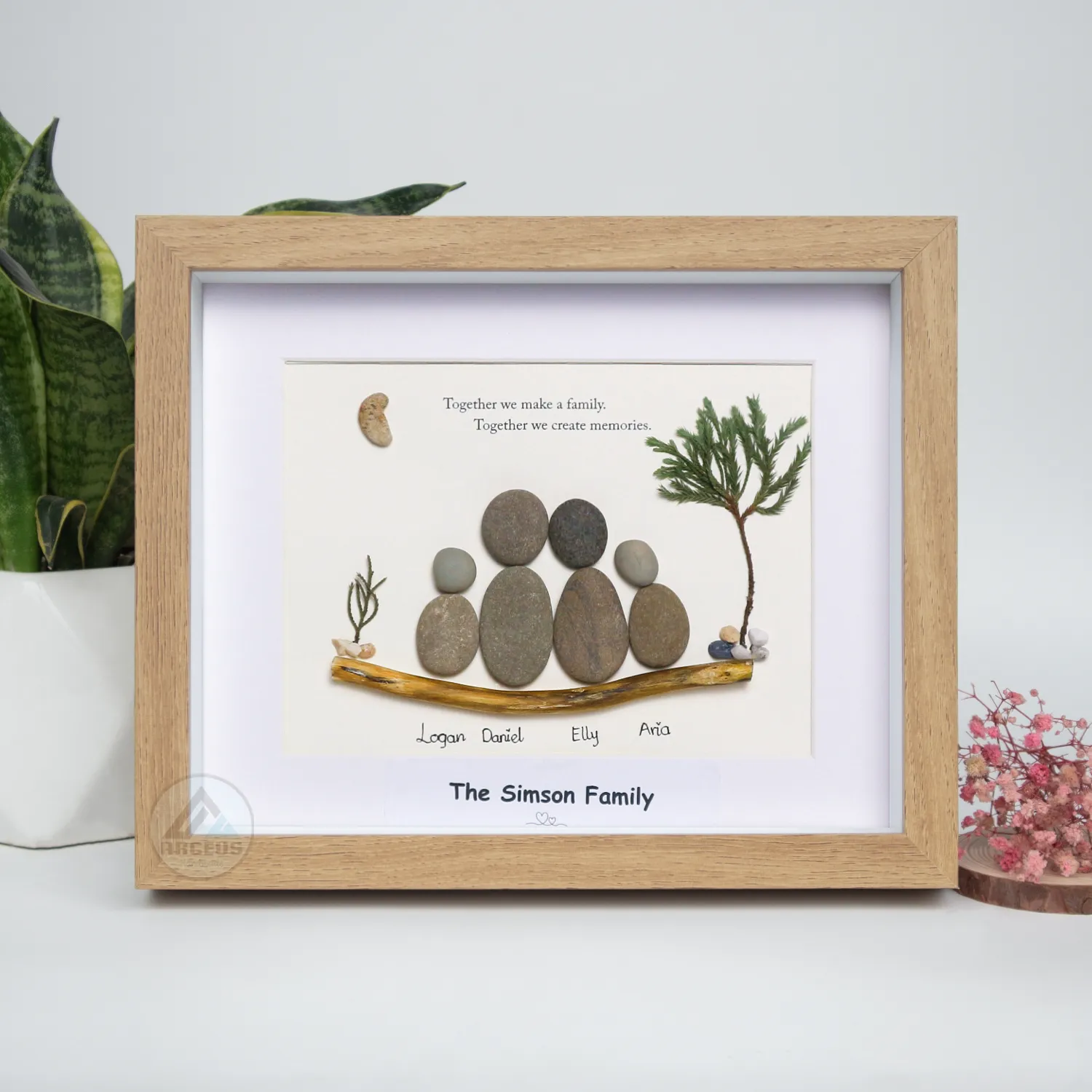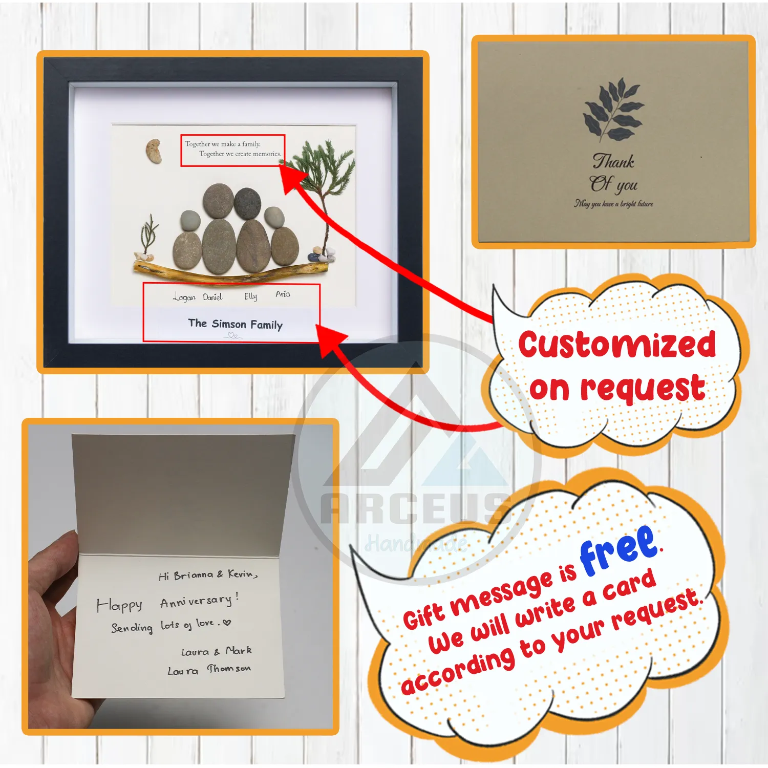 Versatile Display: The beautifully crafted frame is ready for both desktop display and wall hanging, allowing you to showcase your personalized pebble art in any room of your home. Whether placed on a side table or hung on the wall, this artwork will become a warm and inviting focal point that radiates the spirit of your family.